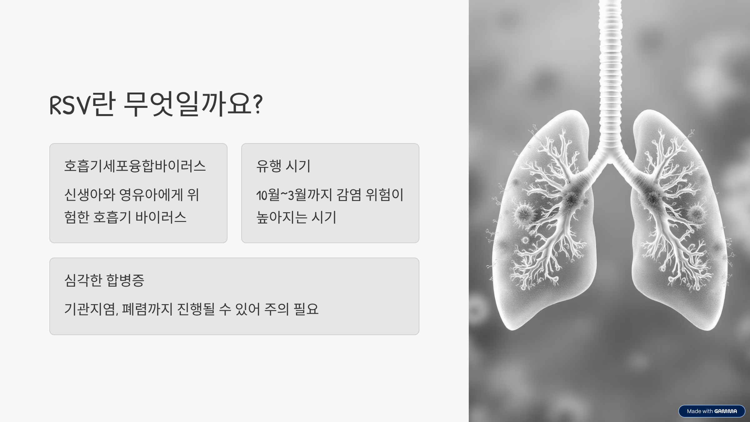 대한민국에서 RSV(호흡기세포융합바이러스)는 신생아와 영유아에게 매우 위험한 호흡기 바이러스 중 하나로, 입원이나 중환자실 치료가 필요한 사례가 적지 않다. 특히 10월에서 3월까지 유행이 심해지는 RSV 시즌에는 신생아 보호를 위해 예방접종이 점점 강조되고 있다. 이 글에서는 신생아 RSV 예방접종의 필요성, 접종 시기, 비용, 접종 가능 병원 등에 대해 명확하고 최신 정보로 정리한다.