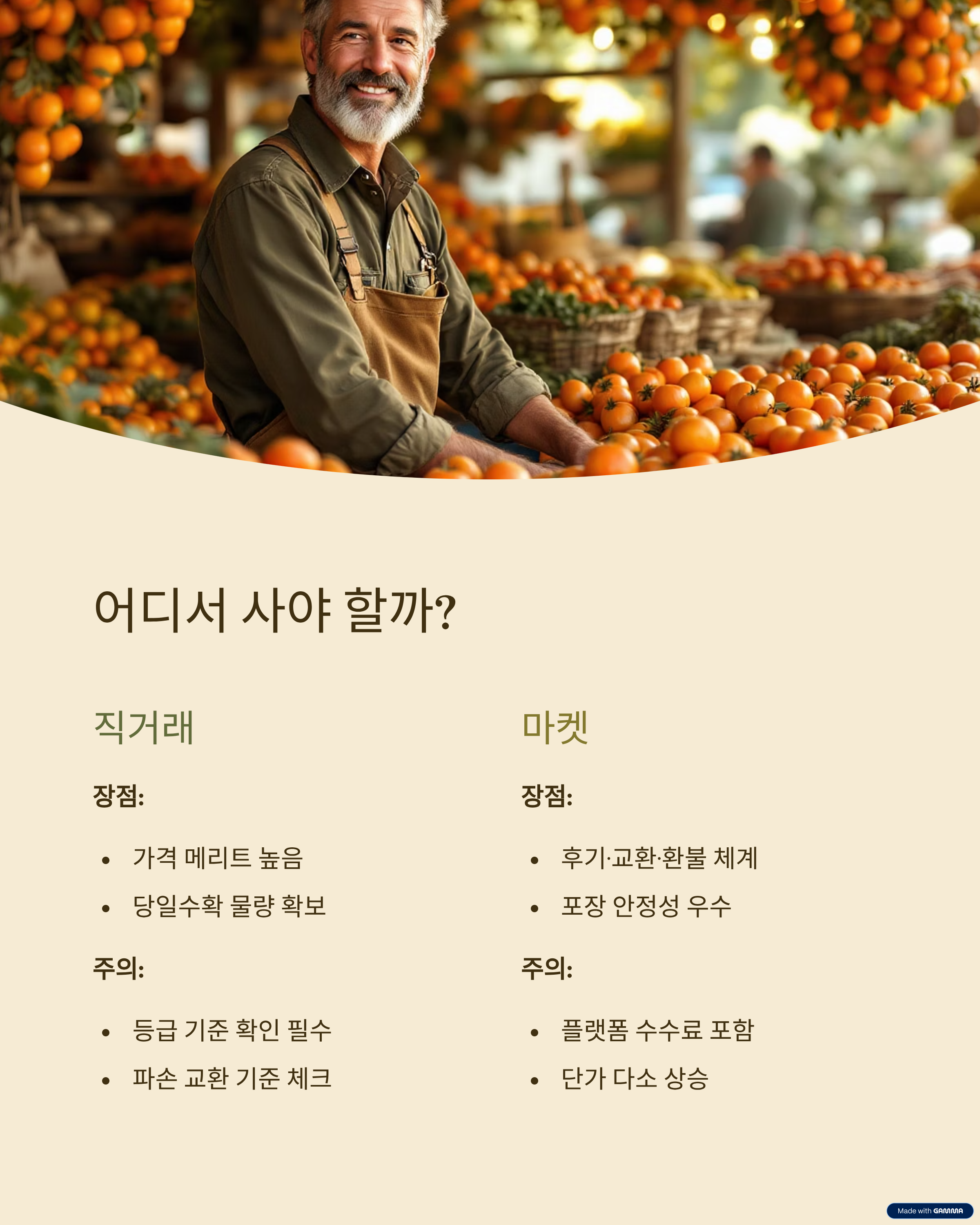 A. 외형 흠집·크기 불균일로 선물용 포장에는 부적합하지만, 맛은 대체로 동일합니다. - Q. 직거래가 왜 더 싸나요?