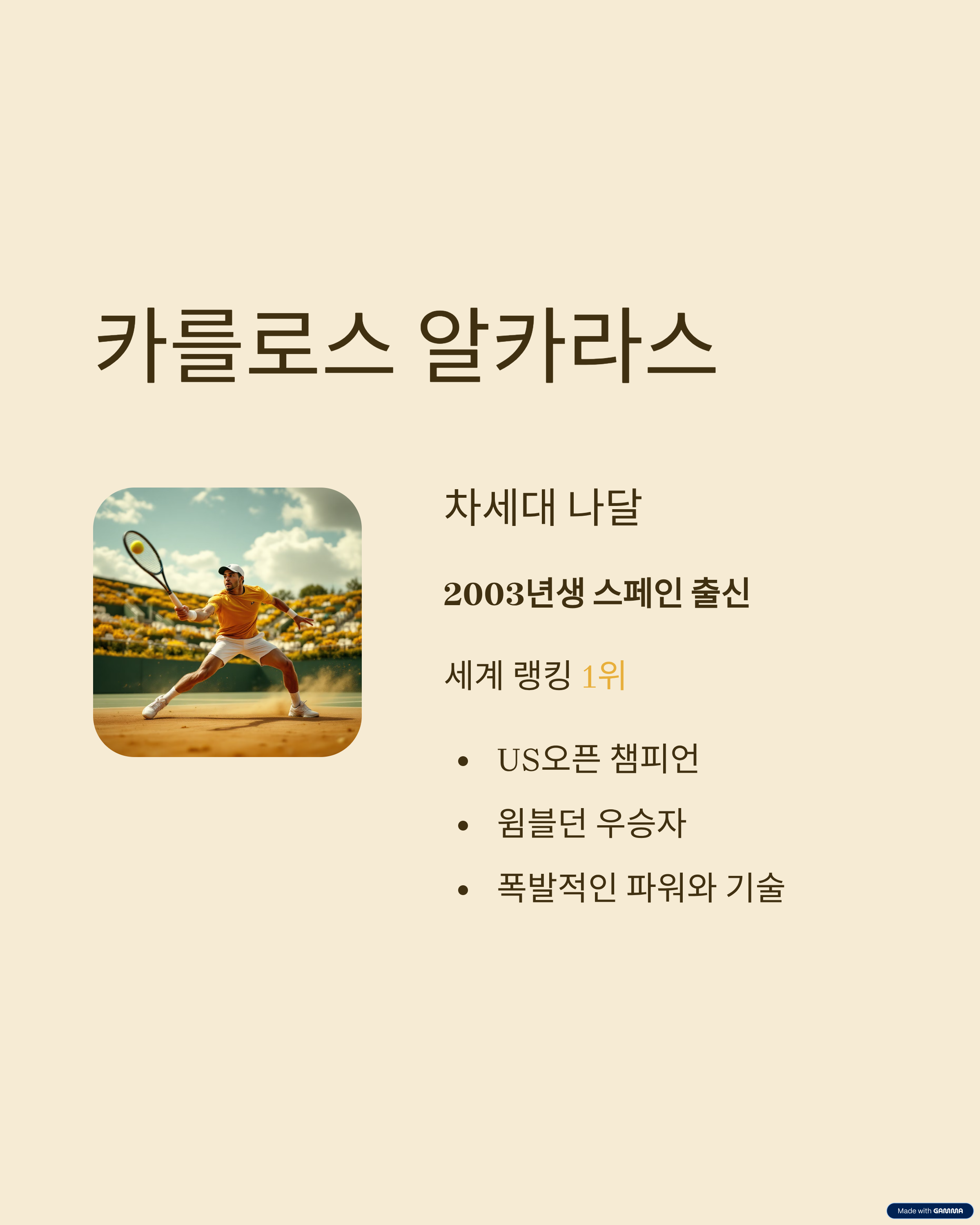 알카라스는 현재 세계 랭킹 1위로, 이미 US오픈과 윔블던을 제패하며 ‘차세대 나달’로 불리고 있습니다. 시너 역시 2024년 말 기준 ATP 파이널 우승자이자 세계 랭킹 2위로, 둘의 대결은 현역 세대 중 가장 치열한 라이벌 구도로 평가받습니다.