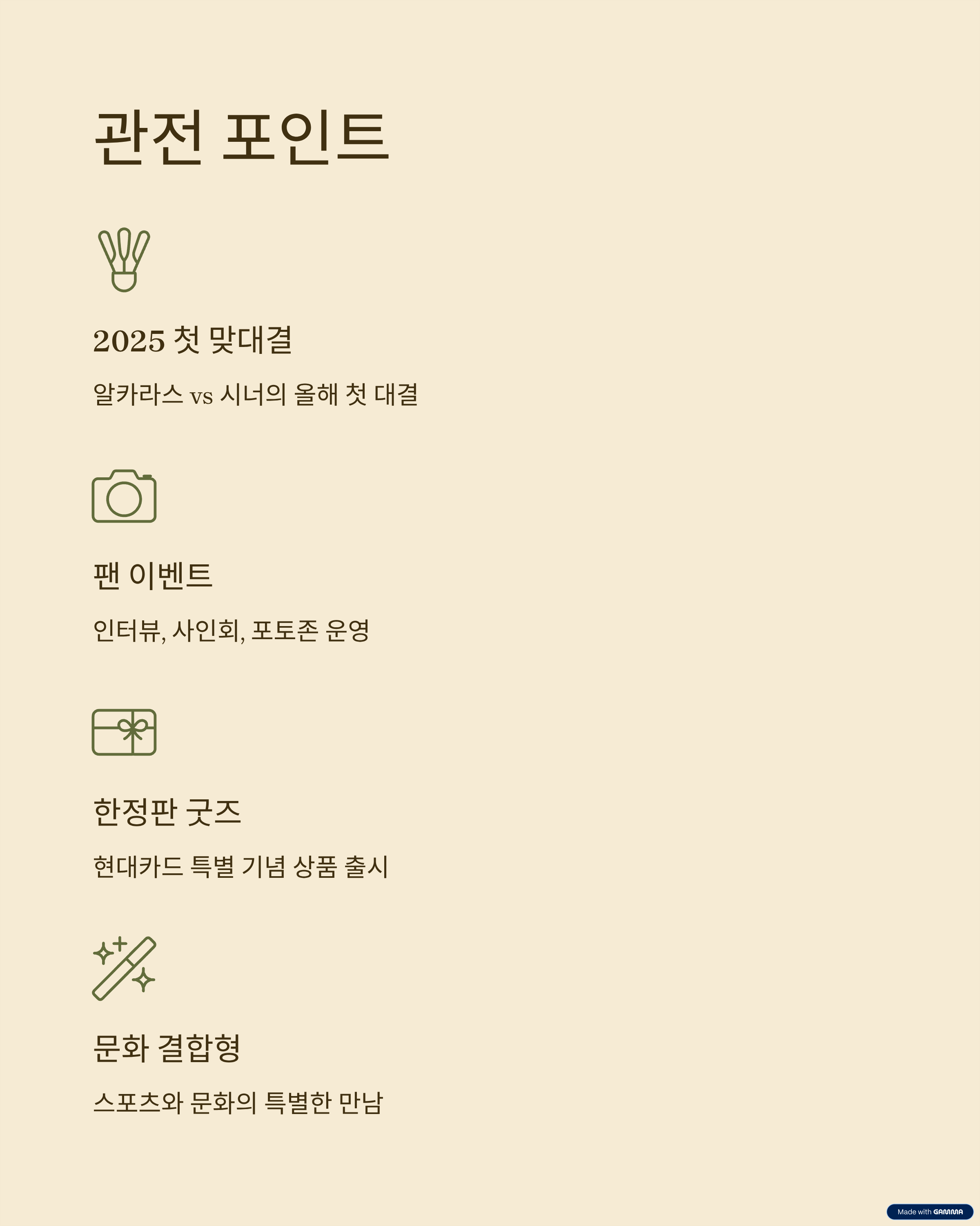 - 경기 외에도 부대행사(사인회·포토존·현대카드 한정판 굿즈 출시) 병행 예정